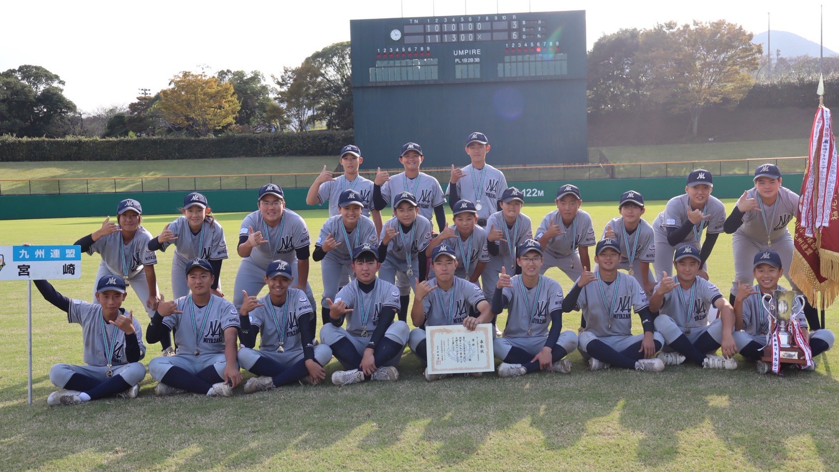 その結果、宮崎リトルシニア東邦クラブ(TC)チームは2回戦で敗退となりましたが、宮崎リトルシニア(ML)チームにおいては、選手たちの不断の努力とチームを応援してくださる皆様の温かいご声援の甲斐あって、見事優勝を果たすことができました。